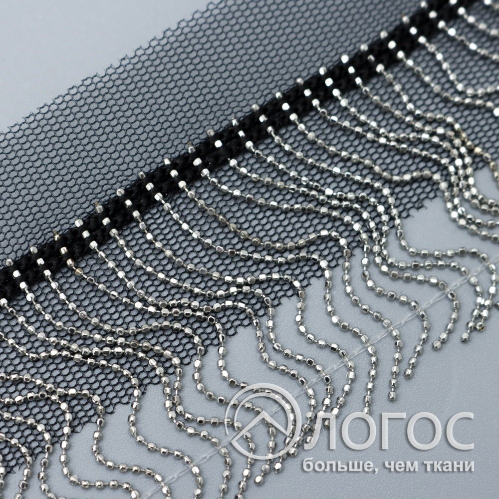 Тесьма декоративная бахрома цепью 60мм GOB-20, серебро
