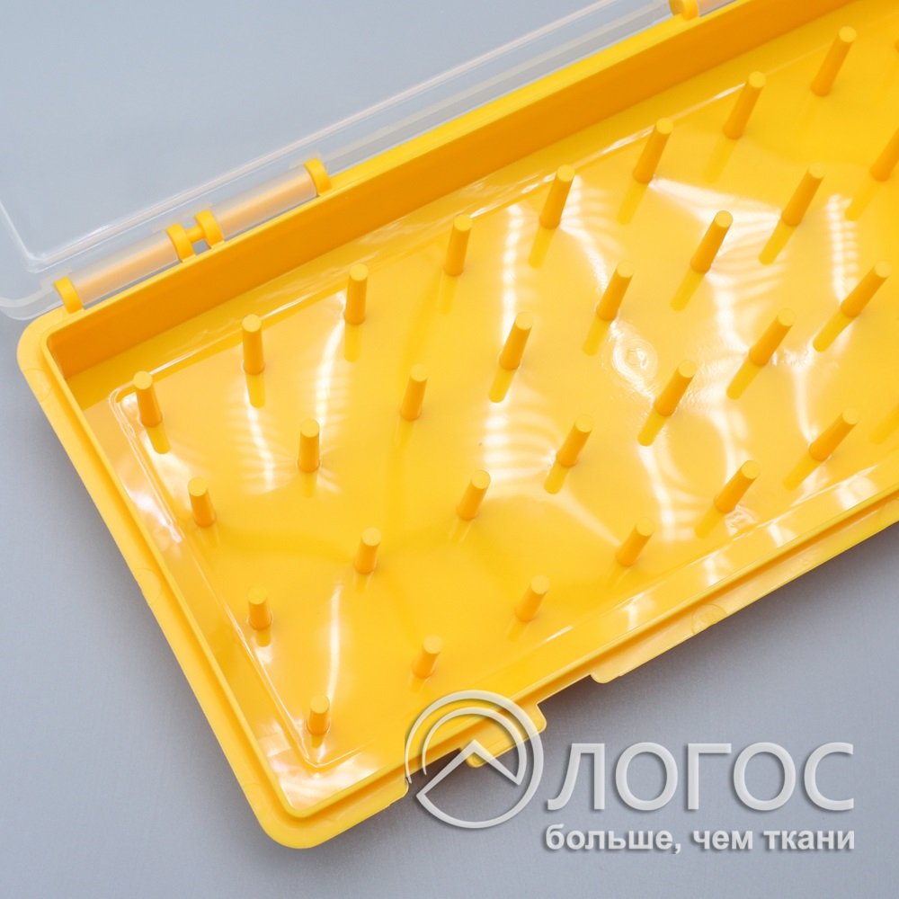 Вместительный пластиковый органайзер позволяет аккуратно расположить шпульки с нитками разных типов и цветов. Удобен при хранении и транспортировке – шпульки всегда будут под рукой. Крышка из полупрозрачного пластика позволяет видеть содержимое и плотно закрывается на две клипсы.